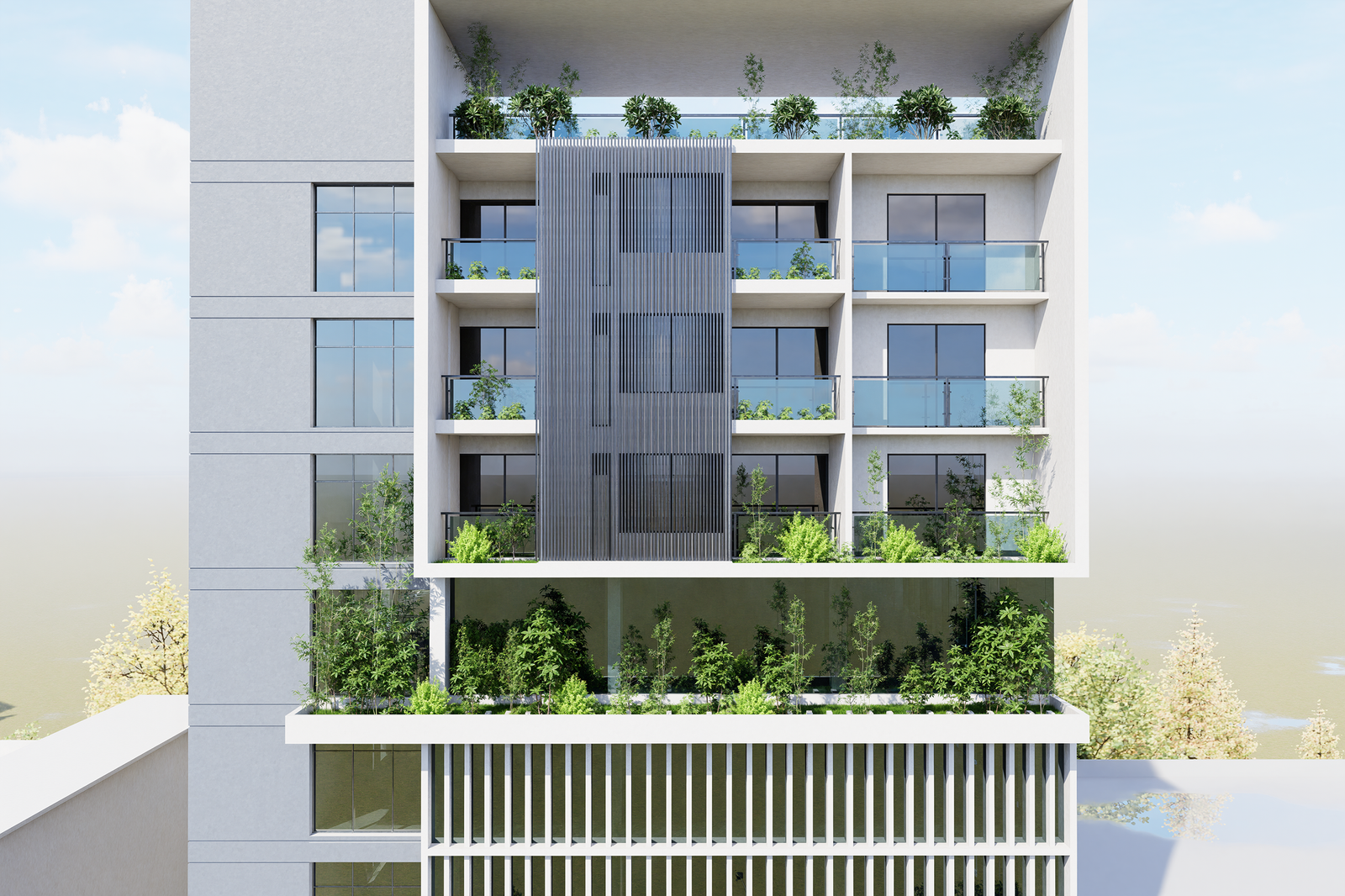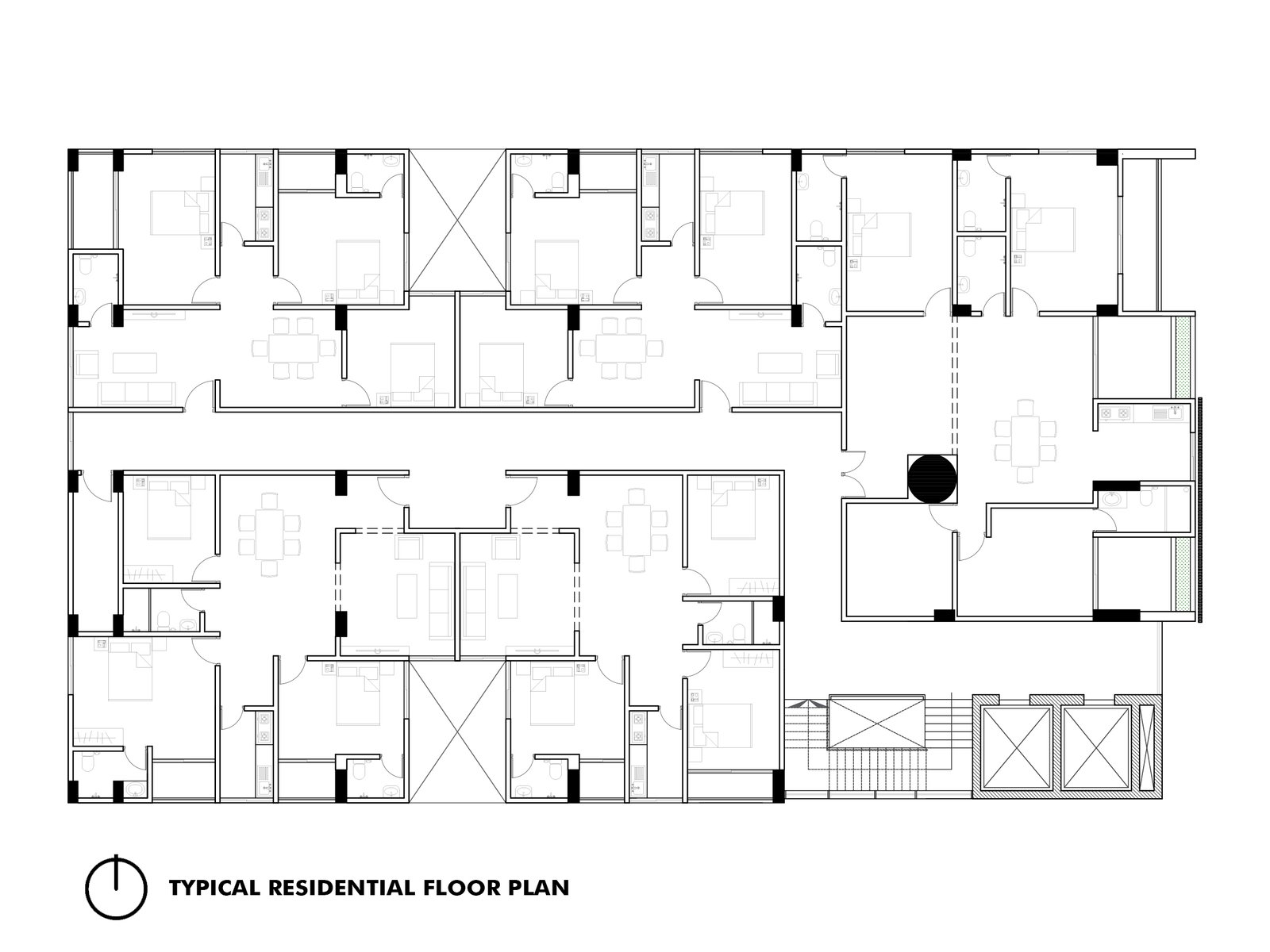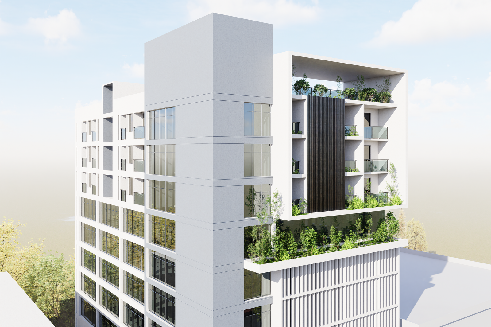 The renovation focuses on enhancing spatial efficiency, improving accessibility, and integrating sustainable building practices. Ground-level spaces are designed for a convention hall, and the first five floors are for open floor plan commercial space, while the remaining floors are reconfigured into modern residential units. Natural lighting, ventilation, and energy-efficient systems are prioritized to ensure user comfort and reduced environmental impact.