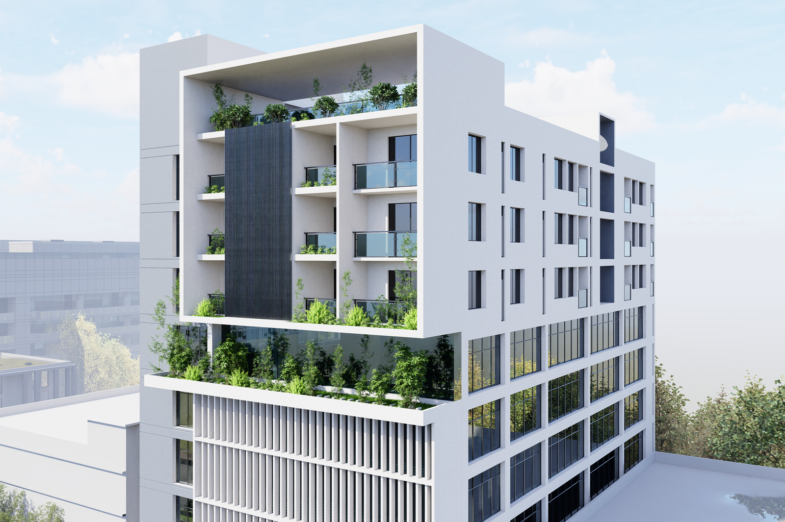 The project involves the renovation and adaptive reuse of an existing mixed-use building to create a vibrant, multifunctional urban hub that seamlessly blends contemporary design with the character of the original structure. The building accommodates a dynamic mix of commercial, residential, and community spaces, fostering interaction and activity throughout the day.