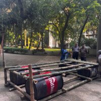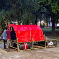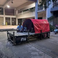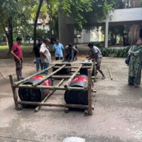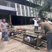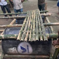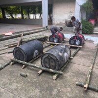 - Construction: The module is built using four drums as floating supports, reinforced with Borak bamboo to achieve the long span. It was completed by two skilled craftsmen in just three hours, showcasing its simplicity and speed of assembly.